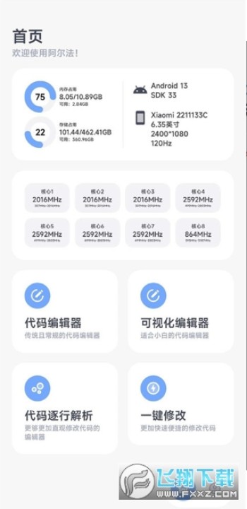 2、代码编辑器,可视化编辑器和代码逐行解析等,用户可以清楚的了解到自己手机的运行以及游戏的具体参数。