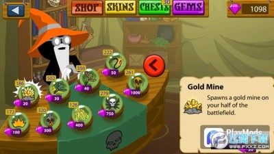 3、玩家需要能够找到一个好的方法来帮助我们在前进的时候获得高分,所以在游戏开始的时候,玩家需要购买一些采矿恶棍来帮助我们制造更多的金币,这样在后期就有足够的金币来购买战斗恶棍;