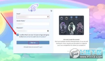 如图所示勾选同意【注册条款】然后点击【Sign up】完成注册