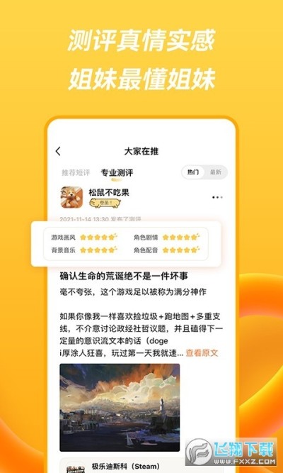 在这里,能看到同好姐妹们对游戏的「推荐值」和「推荐短评」,以及针对画面、剧情、CV、玩法等多重维度出发的细致「测评」。所有游戏的长板和短板都一目了然,每一份测评,都来自姐妹们真情实感的体验。
