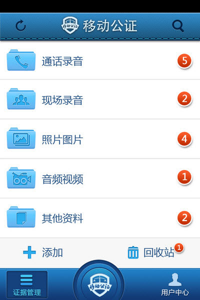 移动公证,最好用的双向通话录音软件,由国家公证机构领衔,中国电信、支付宝、财付通等多方参与,提供具有法律效力的通话录音服务!同时提供现场录音、法律咨询、司法公证等服务,是司法界大力推广的一种有效的电子证据服务形式。