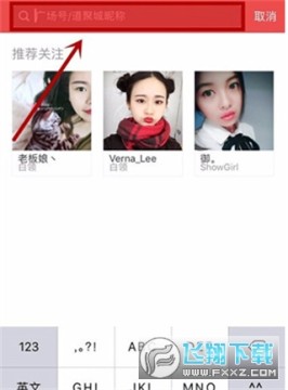 4、在弹出来的搜索框内,输入自己要寻找的【广场号】,然后进行搜索