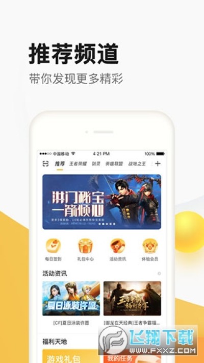 2、手游礼包:汇集王者荣耀、CF手游、天天酷跑等几十款精品手游,免费礼包领不停。