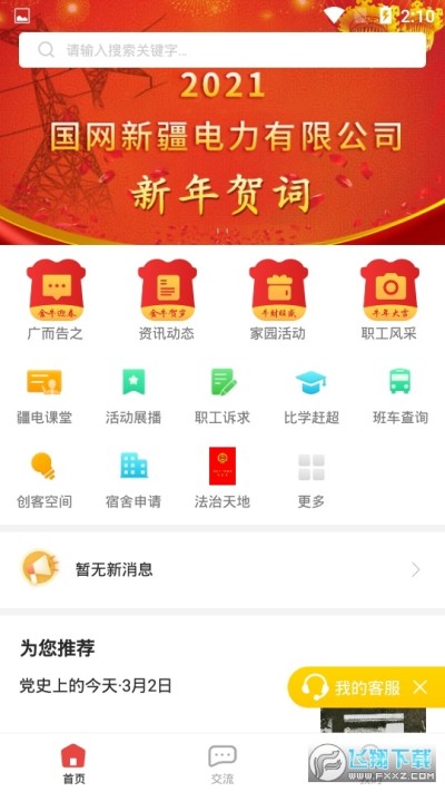 疆电家园e安培是国网新疆电力有限公司为员工打造的移动端职工服务平台,拥有家事、建家、家务、爱家、家园等功能服务,可以帮助用户更好的工作生活。提供资讯动态、丰富的员工活动,在线参与感受气氛,提供专业的技能视频等功能。致力保证每一个职工的贴身利益,打造良好的工作氛围。