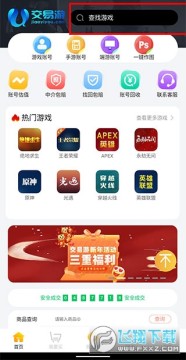 交易游游戏账号交易平台最新版是一款游戏账号服务等虚拟物品的交易平台软件,软件里包含了海量热门的游戏交易,玩家们可以在平台上搜寻需要的账号、道具和服务,寻找不同的游戏代练代肝,平台提供了一个安全、便捷的环境,让玩家可以在其中进行游戏相关物品的交易!