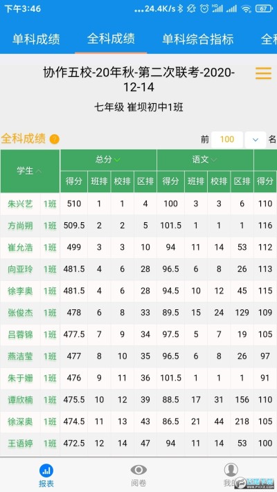 4、查看成绩、排名、学科均衡性、成绩对比、进退步、分段统计分析