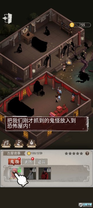 夜幕降临,城市的某个角落,一座恐怖的鬼怪乐园悄然出现,作为它的主人以及阎王在人间的代理人,帮助阎王把滞留人间的孤魂野鬼合理安置,打造一个鬼怪乐园。你可以在乐园中设置各种恐怖的娱乐活动,满足游客的探险需要,结合多种小游戏模式完成抓鬼任务