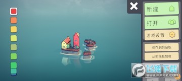 2、点击右上角齿轮按钮打开设置,点击新建,玩家可在水面上建造房屋;