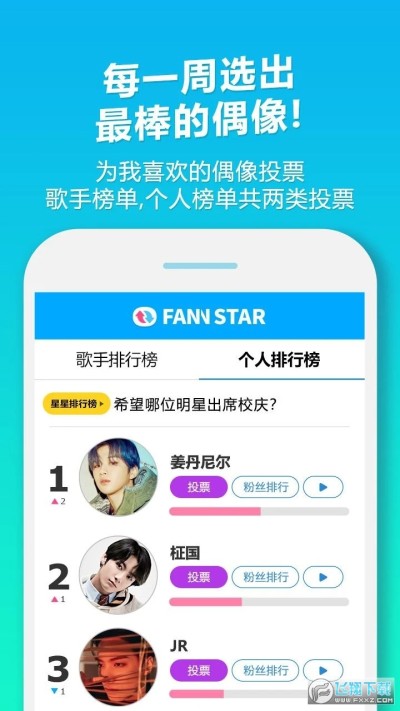 FANNSTAR软件官方下载正版提供了一个投票平台,让用户可以为自己的偶像进行投票,支持他们的发展和成长。软件会推送最新的消息和活动,让用户可以及时了解自己偶像的最新动态。