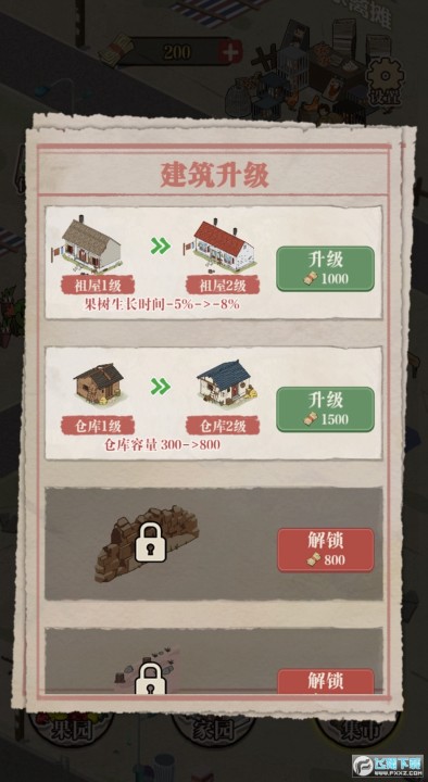 这是一款模拟经营类游戏,玩家可以通过种植维护果树收获果实,在集市上出售果实获取金钱用于升级家园并解锁更多果树,最终实现从小破屋变为豪华乡村大别墅的小目标。