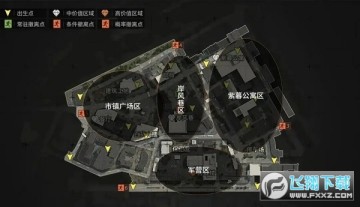 和农场、山谷以及北山类似,军港分为普通模式和封锁区模式,今天我们就以普通模式为主,进行解析,封锁区的内容以后再跟大家聊。首先我来带大家简单熟悉下军港的地形。军港是一个标准的巷战类地图,房屋与街道相互交错,我们可以用建筑群将军港大致分为四个区域:西北的市镇广场区,中间的岸风巷区,东部靠北的紫暮公寓区和南部独立成片的军营区。
