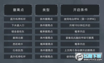 除了这两处撤离点外,地图中还有两个概率撤离点和两个条件撤离点。位于地图西侧餐厅附近的西区哨卡撤离点(5号撤离点)和位于郁金香街东的撤离点(3号撤离点),有50%的概率开启。地图北部的邮局北侧撤离点(4号撤离点)需要穿戴“民兵胸挂甲”并坚守20秒才能撤离,“民兵胸挂甲”可以通过淘汰附近的游荡者获取。地图南部的行政区西撤离点(6号撤离点)需要上交两枚身份牌,并坚守20秒即可撤离。如果在行政楼区域激战之后,不想冒风险从下水道或者直升机撤离,那么交身份牌撤离无疑是最佳选择。