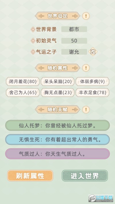 【随机世界】每次穿越都是一个新的小世界,世界背景、气运之子、属性、天赋、人设性格都为随机生成的。