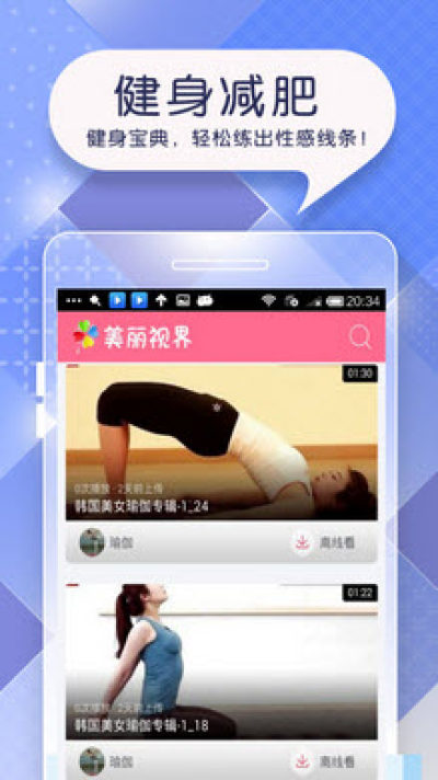 2.减肥,最新最热减肥操、健身、瑜伽、产后形体恢复视频,让减肥美体变得更简单、更健康、更轻松,跟着老师一起练习减肥操,通过科学方法轻松减掉身上的赘肉,让你这个夏天露出性感线条;