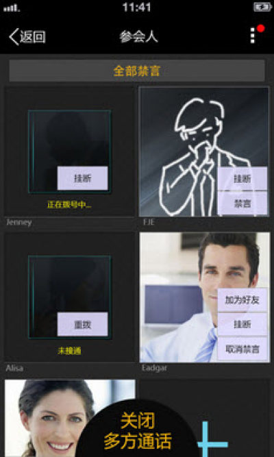 3.即使没有个别人号码,会议中任何人都可以添加新参会人。