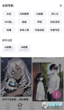 4、切换到社区,这里有众多你感兴趣的话题,例如ai绘图、声控、绘画、动漫等。