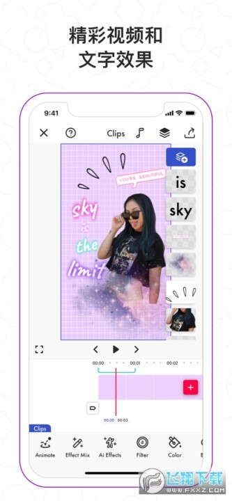 除了令人叫绝的各种功能外,还提供了经典视频编辑器的常见功能,例如视频裁剪.合并.剪切.前裁和编辑等。Funimate 是唯一能满足您需求的视频编辑器和音乐视频制作器。