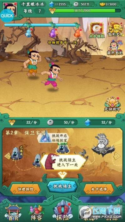 秘境探宝中,特色roguelike玩法,七娃带领众兄弟探索神秘的秘境,地图随机生成,非线性游戏体验让玩家探寻洞窟中的宝藏,爆出最神秘的宝藏!