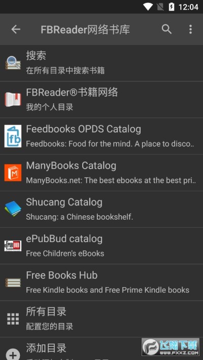7、该阅读器还包括一个浏览器/下载器来访问不同的网络电子书目录和商店。几种流行的英语,法语,俄语,中国和波兰的库都包括在内。自定义OPDS目录太支持。或者,您可以手动下载书籍,并将它们保存在您的/ SD卡/书籍的设备上。