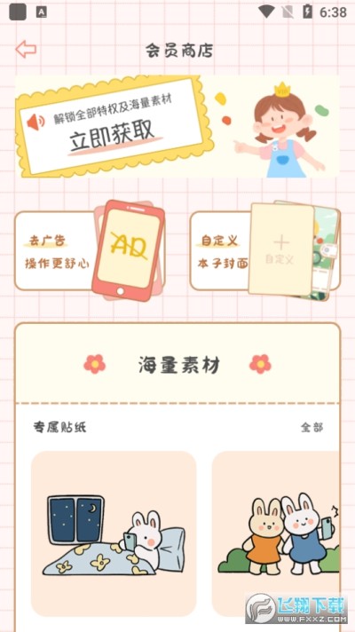 1、海量素材:丫丫手帐拥有大量贴纸、背景、字体、画笔等素材,用户可以自由搭配,创建出自己独一无二的手帐。