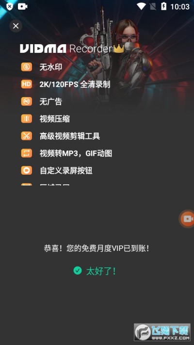 Vidma Recorder是一款免费手机屏幕录制软件,它的界面非常简洁清爽,而且支持中文。只需打开它就能立即使用,非常方便。这个软件没有任何广告,而且解锁了会员功能,让你可以轻松地录制手机屏幕,还能对录制的视频进行处理。除了录制功能外,它还有很多其他功能,你可以自己下载体验哦。