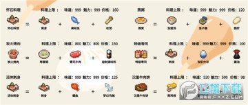 3、而菜品价格也是由八维图的数值直接决定,每个食物都有着其价格、味道、魅力上限,因此在菜品研发上,选择高上限的菜品往往会得到事半功倍的效果!