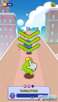 3、前方的路被路牌挡死时,向下滑动即可穿过;