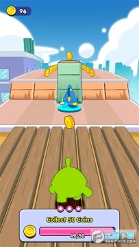1、下载进入奥姆跑酷2正版游戏,在跑酷过程中遇到前方障碍物时,向左或向右滑动即可更换赛道;