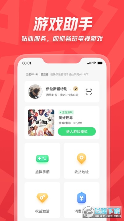 正在玩的游戏,可快速连接虚拟手柄、查看常见问题…
