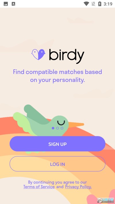 “Birdy是一款个性匹配应用程序,它首先了解你,然后找到你的完美匹配。”-截图