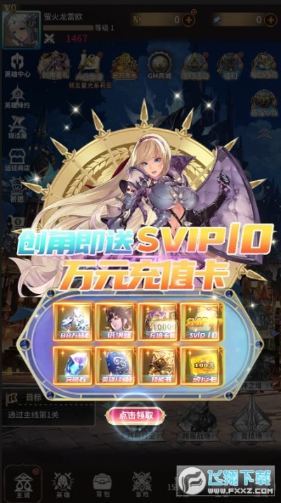 ★创角即送SVIP10、钻石888888、10000元充值卡包、UR英雄、突破石、英雄经验书、英雄技能书