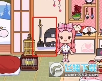 来到温泉小屋,把挨着招财猫的黄色壁纸撕开,里面藏了套忍者服装。