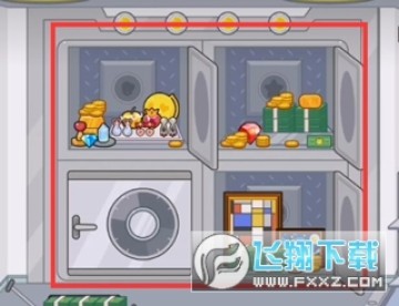 来到银行二楼,打开保险柜,根据图形找到钻石,红心,星星以及贝壳并依次放入,保险柜就会打开,里边有很多宝物。