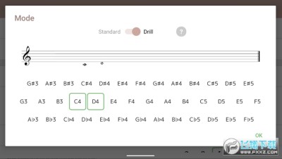 4、提供“练习”模式,您可以在其中精确配置乐谱中将出现的音符类型。 此外,它还提供转置功能。