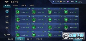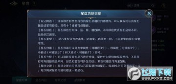 上图是星盘功能的主界面,可在此界面点击星石进行替换和升级操作,右方显示蓝色和绿色星石的属性总和,而紫色和蓝色星石需要点击星石查看属性。