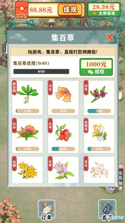 悠然百草园红包版是一款以农场种植为主题的放松型模拟游戏,游戏中融入了各种元素,例如养成、探险等,让游戏更加丰富多彩。游戏中,玩家将扮演一名小农夫,在百草园里开垦自己的农场,种植各种蔬菜、水果、草药等作物,并且可以从中获得一定的收益。