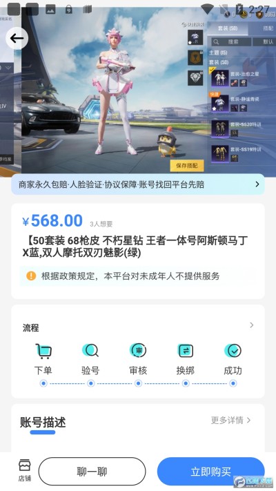 【安全】提供永久包赔服务、买前试号,先聊后买,支持支付宝和微信等多种交易方式。