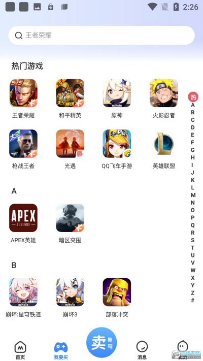 1、下载好app后,点击进入,在首页中点击卖账号。