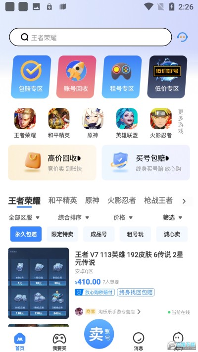 【买号】王者荣耀、原神、和平精英、lol、云顶之弈、等数热门游戏超值选购。