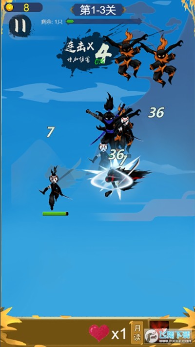 1.很有节奏感的游戏背景音乐,可以帮助忍者解锁游戏当中的各种动作技能