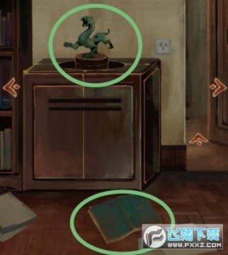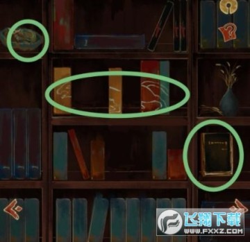8.将总共获取了四本书,按书上的图案分别放入书柜上(截图慢了,只截到了一部分)将从娃娃眼睛上获得了装置放入孔中,出现一个密码锁。