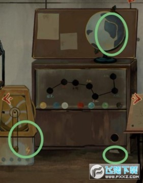 13.打开台灯的按钮,并将三个地图碎片分别放在台灯下按照提示移动方块,发现一个日记本将从小人身上取得的头盔去流水装置处取水,将取得的水洒在日记本空白页根据提示摆放小人,获取磁铁将磁铁粘在小球上,按颜色分别放入图中小球滚落出来拾取并根据日记本中的提示,打开门。