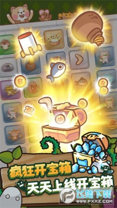 上线开宝箱,疯狂开宝箱,宝箱随着开启次数不停升级,不停提升获得更稀有道具的能力。