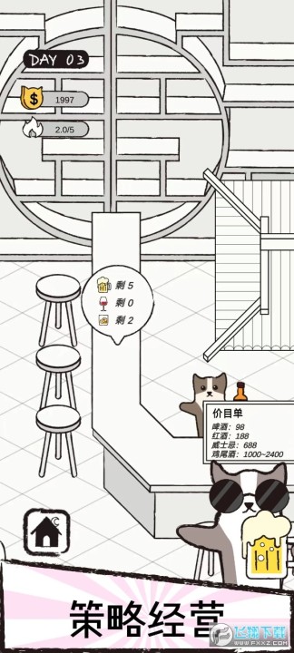 Happy Happy Happy~ 欢迎光临《猫咪跳舞俱乐部》!这里不仅是一家猫咪主题的夜总会,更是一座热闹非凡的鸡尾酒王国!你将化身调酒大师,调制各种酒精艳饰的美味鸡尾酒。但记住,我们的目标不只是让客人开怀畅饮,还要让他们陶醉其中!通过巧妙灌醉客人,你将获得丰厚的小费!保持头脑清醒,运筹帷幄,让你的俱乐部七天不破产!快来挑战吧,成为最炫酒技的调酒大师!