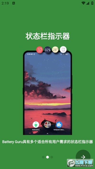 状态指示,特色的状态栏,帮助知识电池的各种指标,温度,耗电量,负载程度等。
