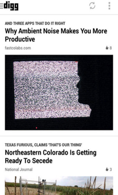 Digg是来自官方的客户端,在digg中用户可以提交新闻并订阅新闻,当订阅数达到一定数量后,digg算法将自动把新闻加入首页。文章分三种(首页发布的文章,列队等待投票文章和全部文章)保存在不同分类中,读者可以浏览所有的提交的文章,当一个文章得到足够多的票数,它将会显示到首页。