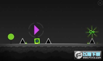 游戏的操作非常简单,主角方块会自己向着屏幕右边前行,而我们要做的就是点击屏幕让它跳跃起来躲避路上的障碍陷阱即可。