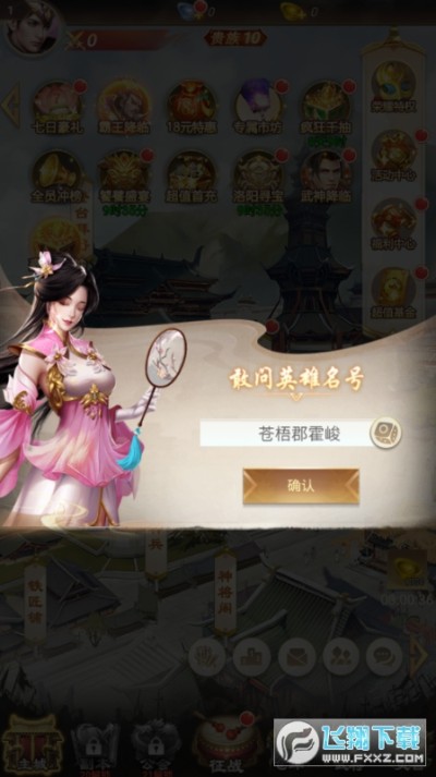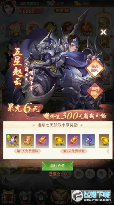 唯一充值货币:元宝,推图白送【终身元宝】福利和SSS神将关羽