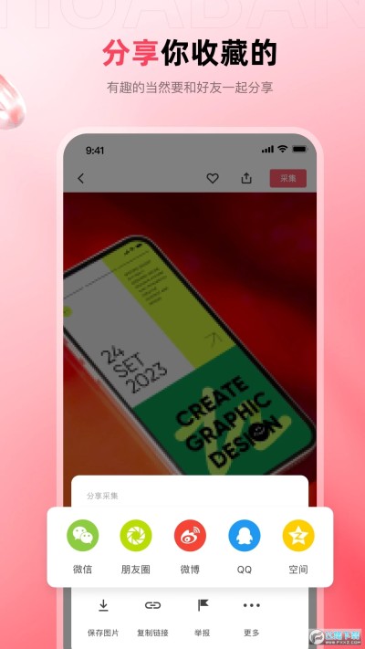 -- 通过微信,微博等分享你喜欢或收藏的内容,将此刻的灵感传达给好友。