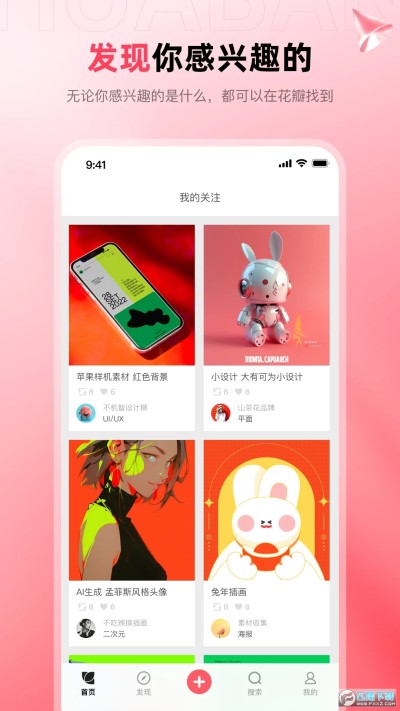 2、发现你感兴趣的事物,设计,家居,美食……无论你感兴趣的是什么,都可以在花瓣上找到。